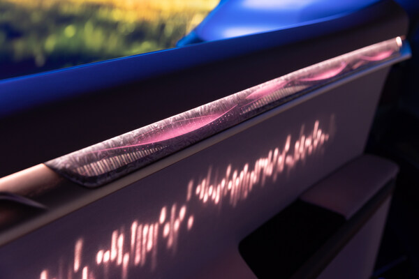 延锋独有的"婉风"出风口技术,能模拟自然风,搭配特殊叶片结构设计和高性价比的电机组合,其吹出的气流风速以正弦曲线线性变化,带来波浪状起伏的风感,让驾乘者在车内也能如沐春风。同时,超窄自然风电动出风口可以与座舱功能性灯光技术相结合,实现更直观的交互体验。
