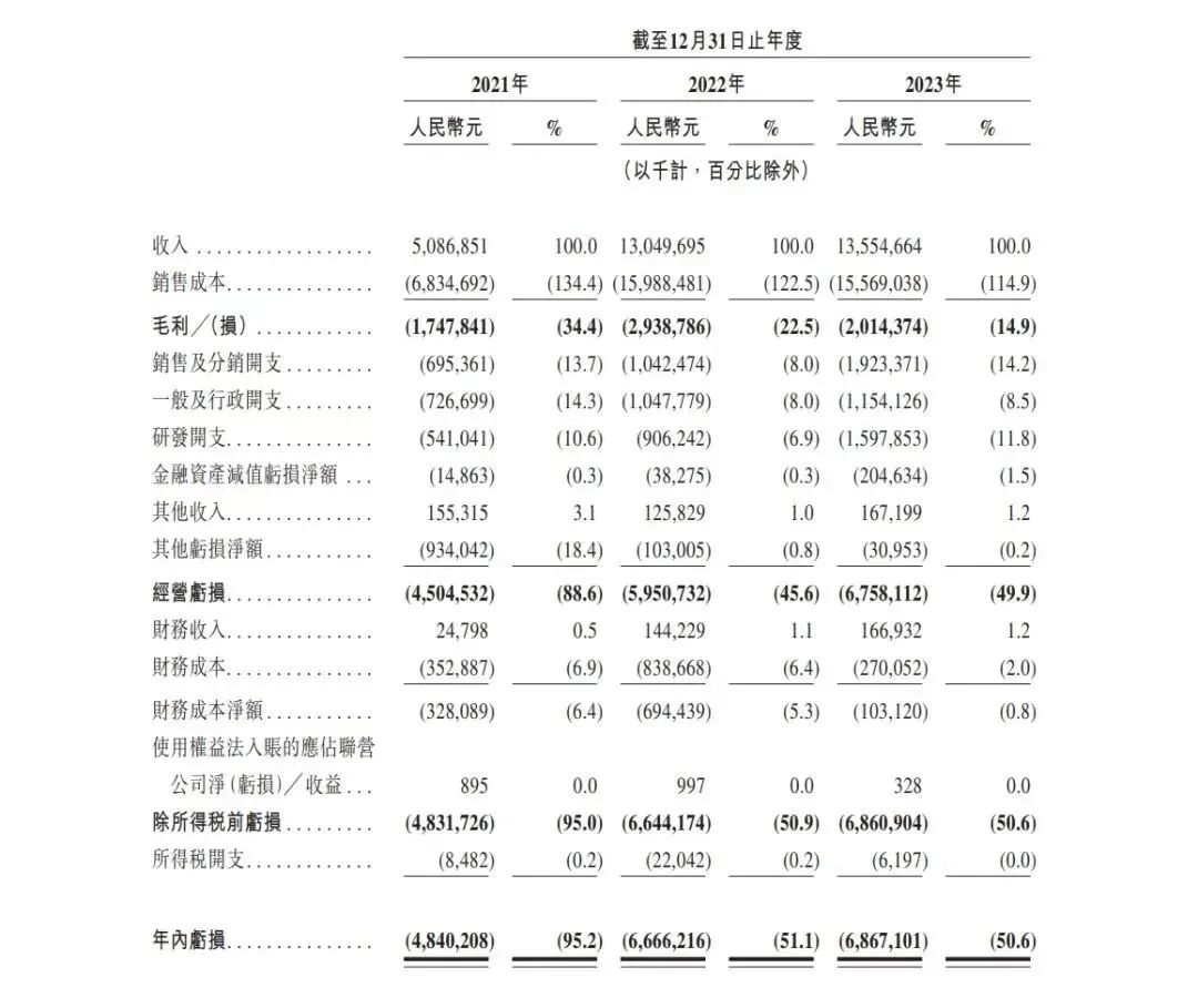 但哪吒自2017年成立以来,累计融资超过240亿人民币,新势力中恐怕只有蔚来可以比一下。要是比惨的话,理想蔚来小鹏都曾出现资金链危机,蔚来股价一度跌到 1 美元出头,现金流仅剩 15 亿元。理想情况更差,财报显示,理想在 2019 年的自由现金流为负 27.5 亿元。小鹏去年净亏损达到历史最高来到103亿元,2023年毛利率仅为1.47%。