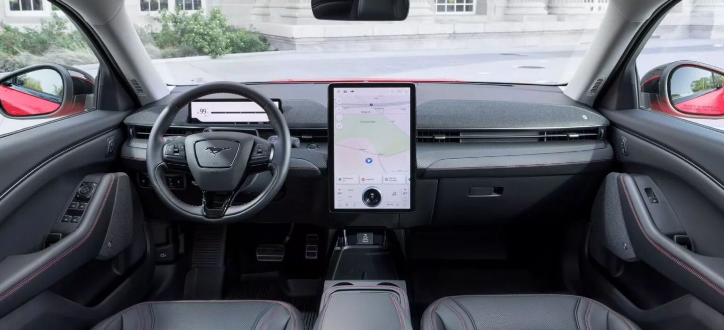 在科技方面,2025 款 Mustang Mach-E 采用了新的福特连接套件,包括 5G Wi-Fi 热点、联网导航和车载应用程序。