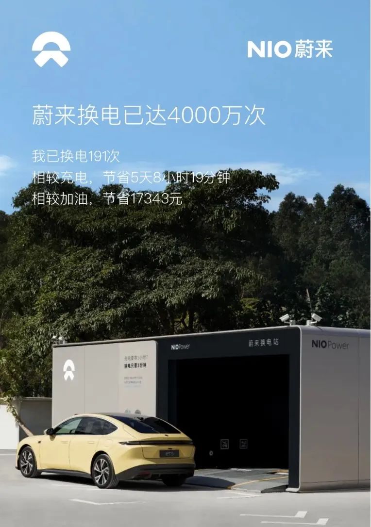 图/2024年蔚来达成换电4000万次 来源/互联网 新能源观截图