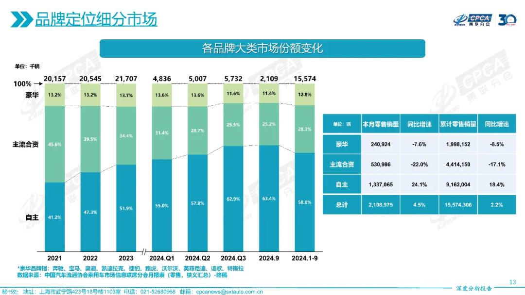 图/2024年1-9月自主品牌市场份额 来源/乘联分会 新能源观截图