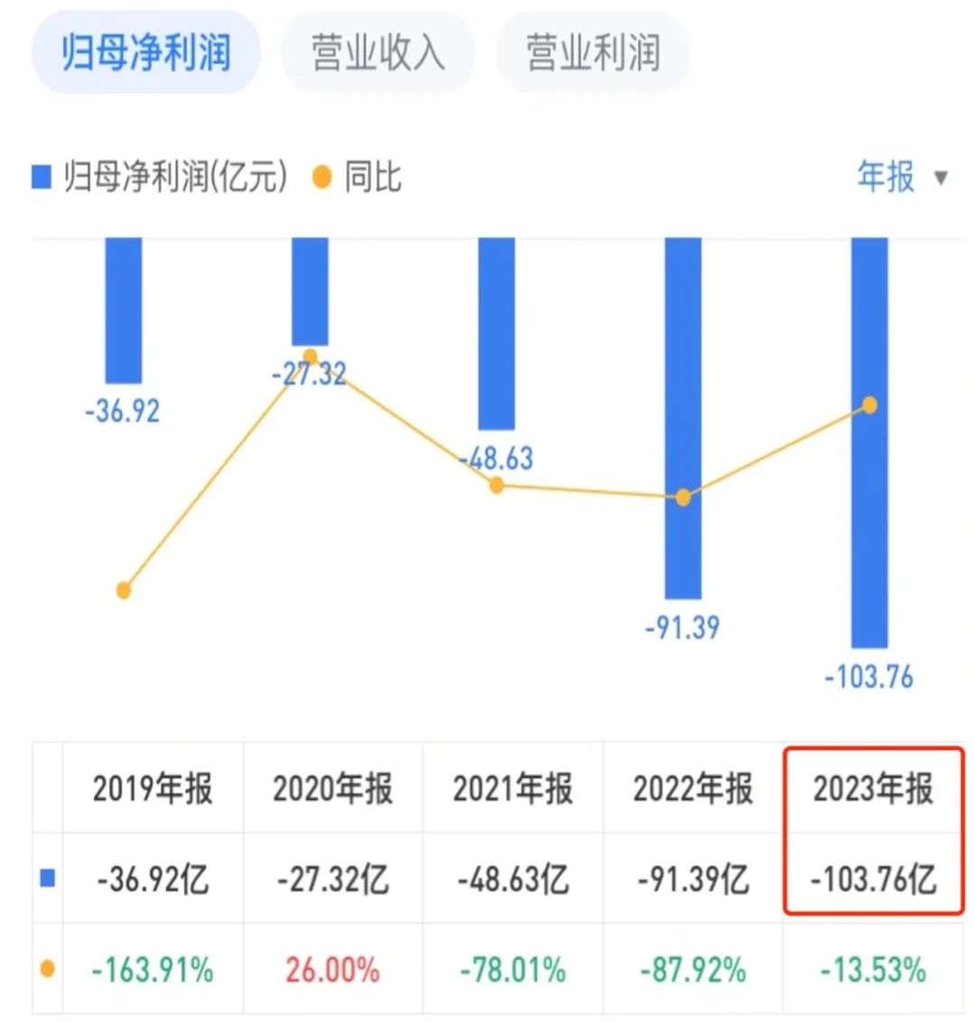 图/2023年小鹏亏损逾百亿 来源/互联网 新能源观截图