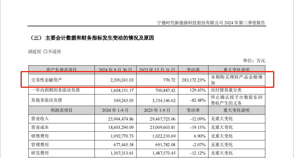 宁德时代三季度毛利率31%。还买了220亿的理财产品。