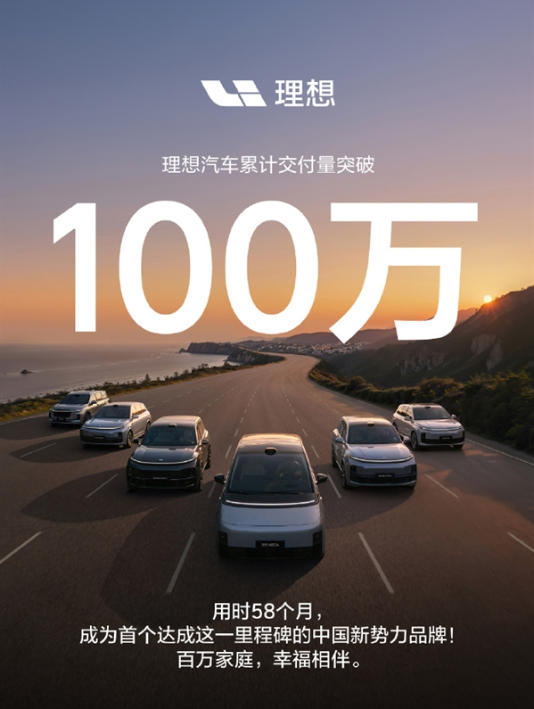 理想汽车在10月18日宣布其累计交付量已突破100万辆,仅用时58个月,成为首个达到这一成就的中国新势力品牌。