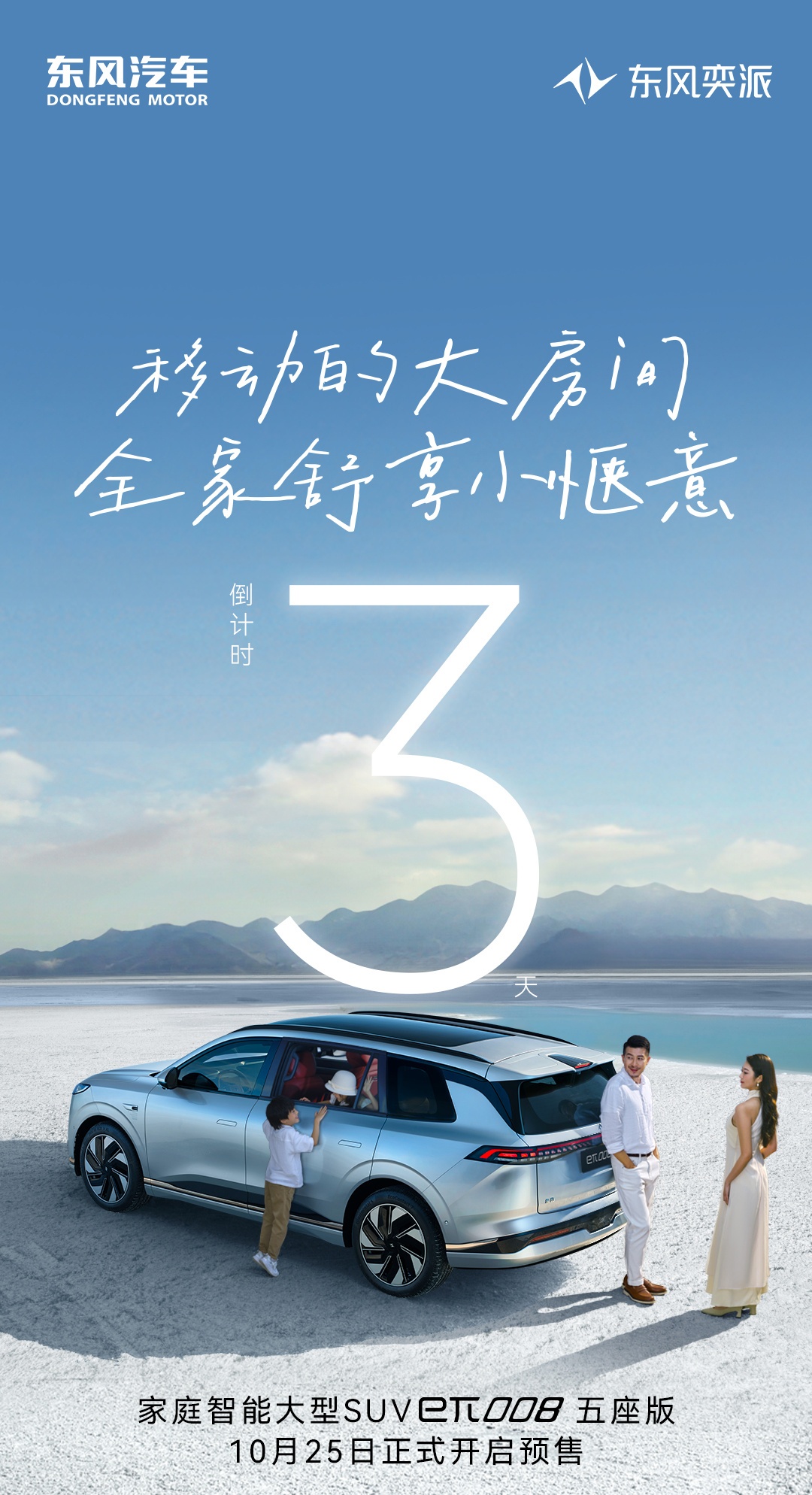 IT之家 10 月 22 日消息,东风奕派官方宣布,eπ008 五座版将于 10 月 25 日开启预售。