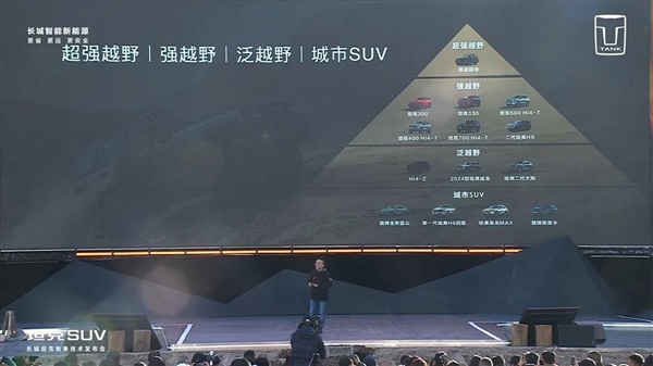 IT之家注意到,长城汽车在发布会上将越野车的越野能力分为四个等级:超强越野、强越野、泛越野和城市 SUV。