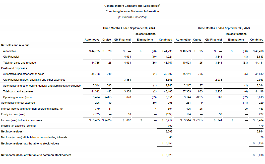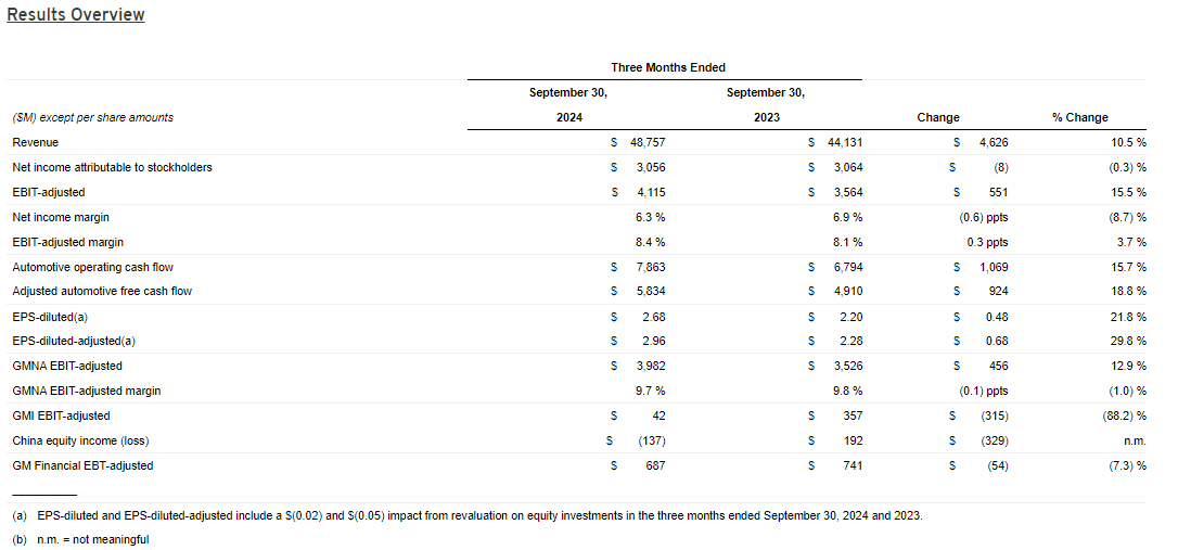 IT之家 10 月 22 日消息,通用汽车今天公布了 2024 年第三季度财报并更新全年指引:第三季度营收 488 亿美元(当前约 3476.69 亿元人民币)同比增长 10%,归属于股东的净利润 31 亿美元(当前约 220.86 亿元人民币),但税前利润增长近 16%,这是该公司今年第三次上调盈利预期。