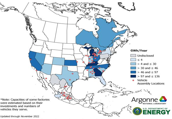 根据美国能源部数据统计,预计到2030年,北美地区动力电池产能规划将达到1000GWh,是2021年的近20倍,能够支持1000-1300万辆电动汽车电池的本地化供应需求。