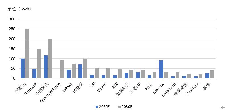 图表3 2030年欧洲地区动力电池产能规划资料来源:公开资料、车百智库整理