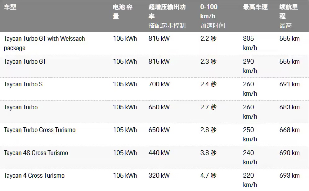 Taycan Turbo GT 的系统功率为 580kW,配备起步控制系统后的超级增压功率可达 760kW。