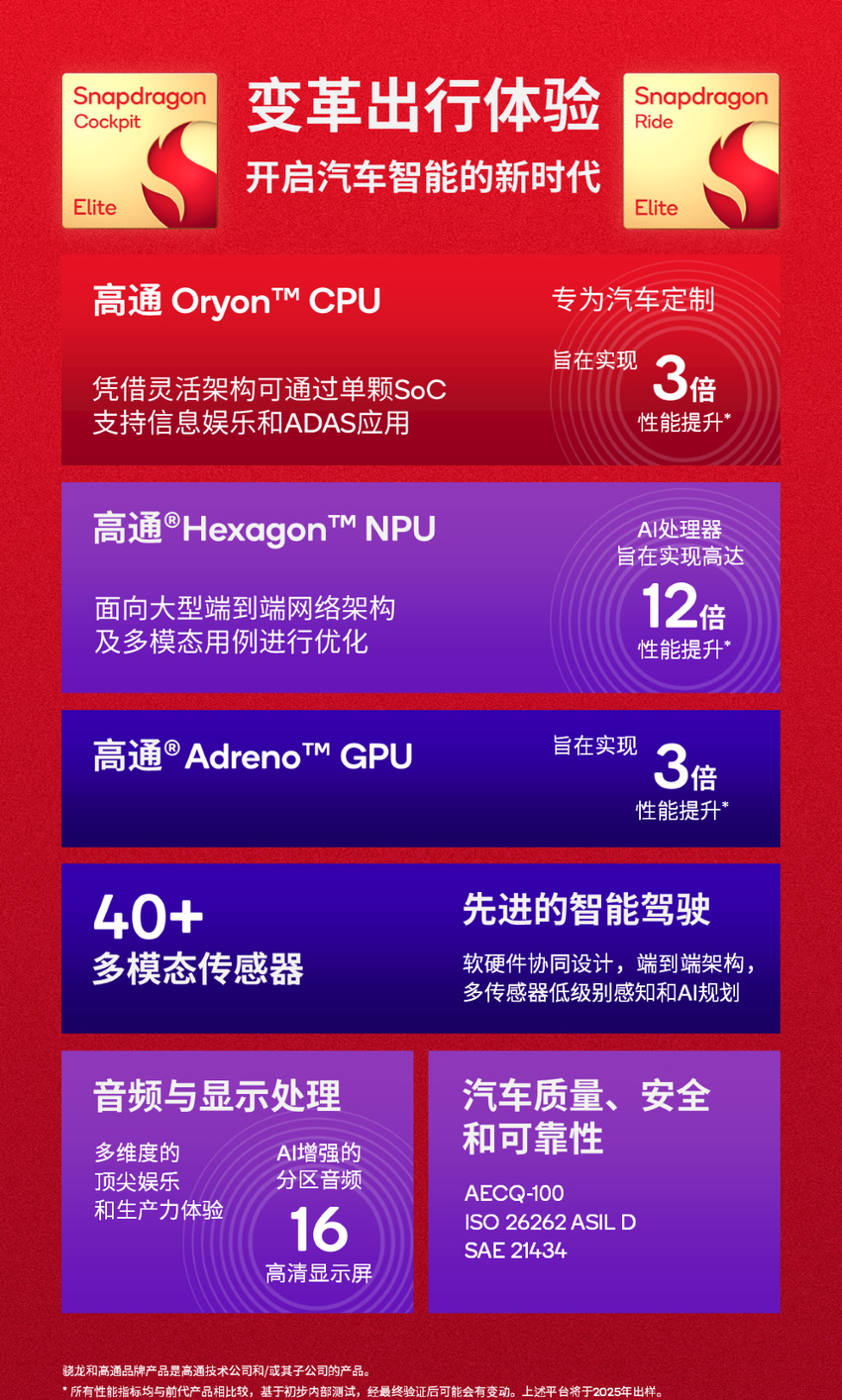 骁龙座舱至尊版平台和Snapdragon Ride至尊版平台都将在2025年出样片。