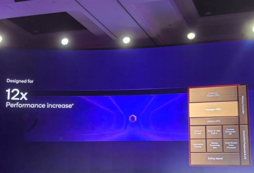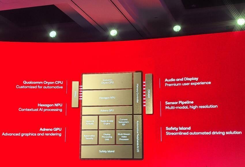 据高通技术公司汽车、行业解决方案和云事业群总经理Nakul Duggal介绍,跟前代产品相比,这两款产品采用了统一的架构:高通专门为汽车定制的高通Oryon CPU,其速度相比前代提升至3倍;同时还配备了面向汽车应用设计的Adreno GPU,性能也提升了3倍;其面向多模态AI设计的专用神经网络处理器(NPU),性能比前代提升了12倍。