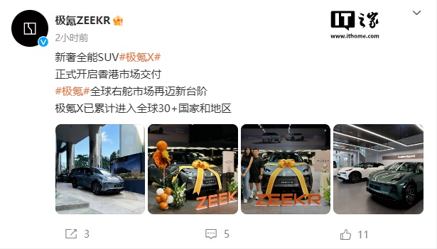 IT之家 10 月 23 日消息,极氪汽车官方今日宣布,极氪 X 正式开启香港市场交付,该车已累计进入全球 30 + 国家和地区。