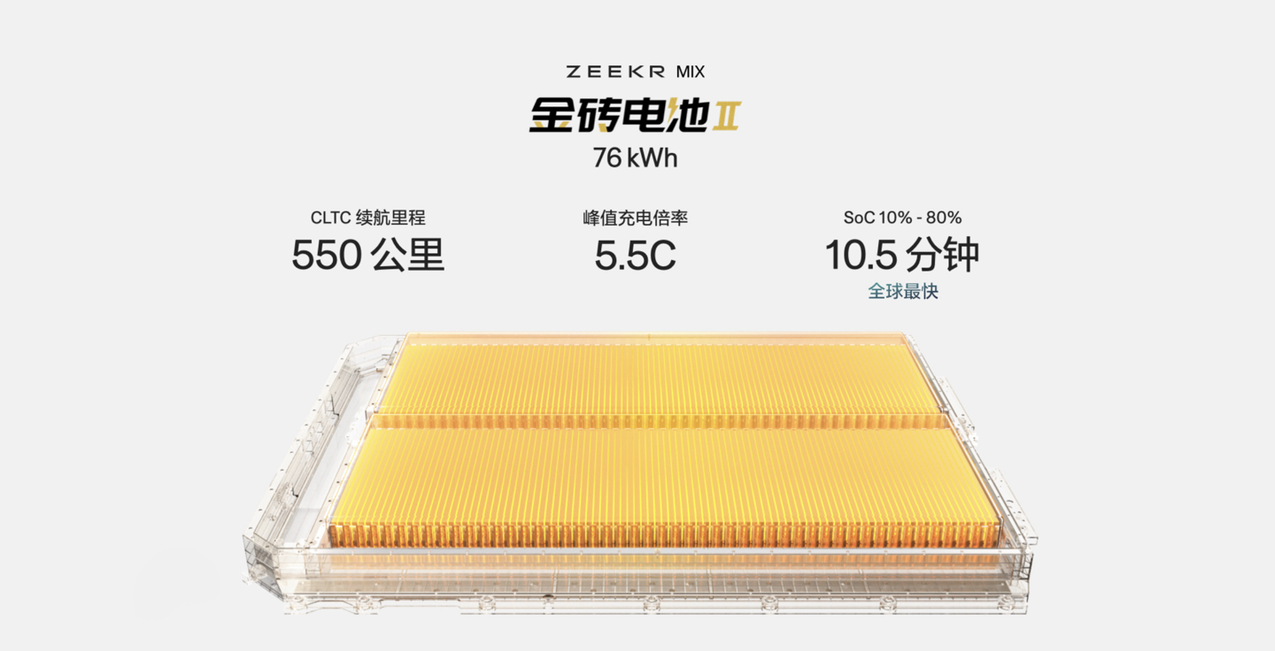 IT之家 10 月 23 日消息,在目前正在进行的极氪 MIX 车型发布会上,极氪介绍了系列车型的电池信息,号称“充电速度全球最快”。
