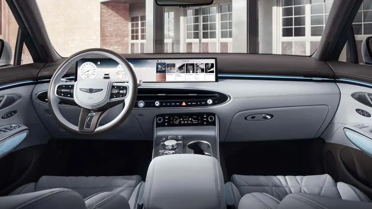 座舱方面,2025 款 GV70 摒弃了老款的双屏设计,取而代之的是与 G80、GV80 及 GV80 Coupe 相同的 27 英寸 OLED 超大双联屏。