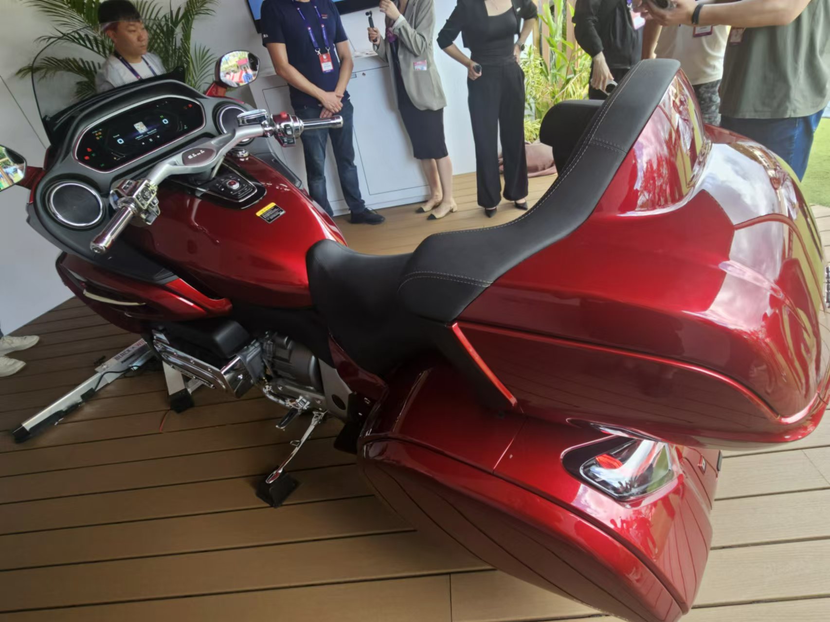 在今年峰会设置的汽车展区,集微网看到这款长城SOUO实车,据称SOUO 2000是全球首屈一指的超大型重机车,也是长城首款重机车,主要竞争对手是宝马R18、哈雷滑翔、本田金翼等。