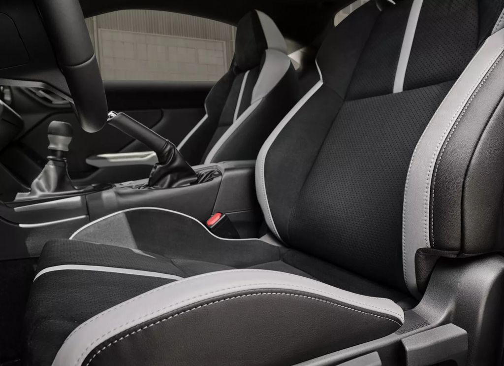 内饰方面,前排运动座椅采用黑色 Ultrasuede 面料,搭配灰色皮革侧翼和灰色对比缝线,增添运动感,车内还配有红色 STI 启动按钮和铝制换挡杆。