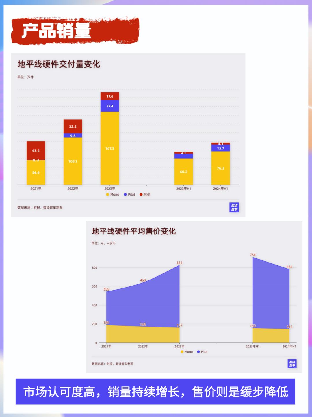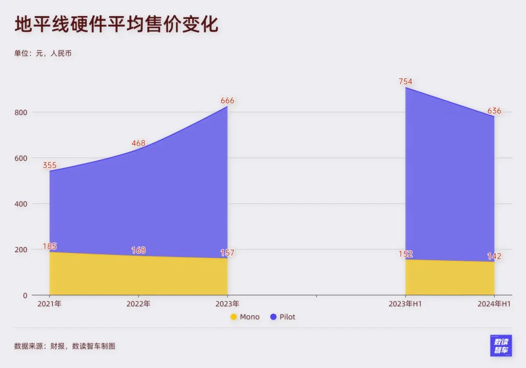 不过现阶段,地平线还需要极高投入,并且由于竞争对手多,行业目前还处于初期,未来大概率会有价格战等情形。Mono进入成熟期后,平均售价连年下降,pilot的售价同样如此,在2023年达到顶峰后,今年上半年的平均售价也在下降。这意味着地平线现在和可预见的将来,都会处于严重入不敷出的状态。