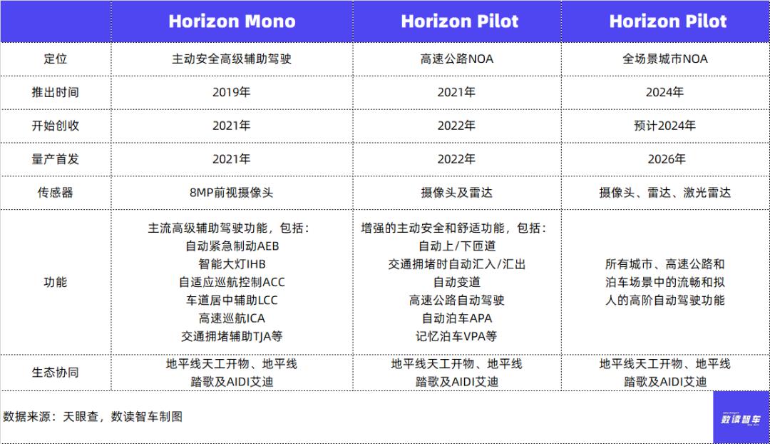 三大完整方案分别为Horizon Mono(高级辅助驾驶解决方案)、Horizon Pilot(高速自动领航解决方案)、Horizon SuperDrive(高阶自动驾驶解决方案),是逐层升级的关系。