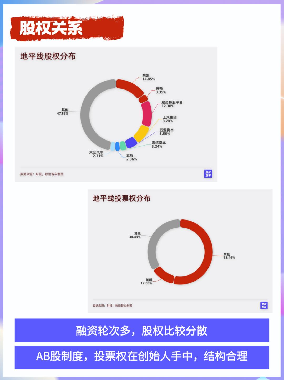 不过通过AB股制,地平线的管理团队将控制权牢牢把控在手里。余凯拥有53.46%的投票权,黄畅拥有12.05%的投票权。