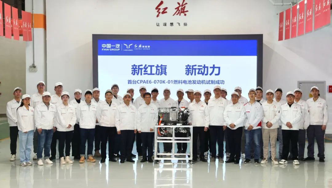 IT之家 10 月 24 日消息,一汽红旗昨日晚间宣布,该公司研发总院自主研发的首台 CAPE6-070K-01 燃料电池发动机在整车开发院试制部成功试制。