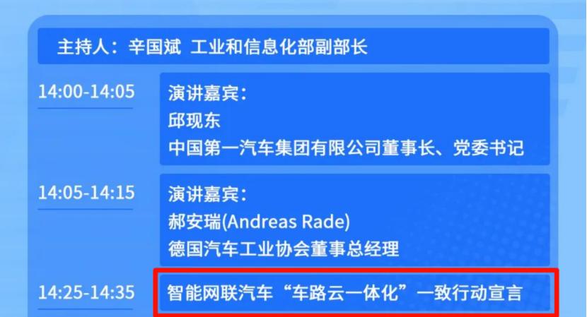 但耐人寻味的是,在这些一把手发言之前,大会有一个宣言,叫智能网联汽车“车路云一体化”一致行动宣言。“车路云一体化”的概念相对冷门一些,但也是自动驾驶非常重要的一个技术路线,与之对应的是“单车智能”,也是当前众多车企和智能驾驶厂商选择的技术路线。