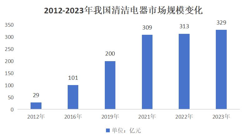 我国清洁电器市场规模,从2012年的29亿元增长到2021年的309亿元,市场规模扩大了10倍。