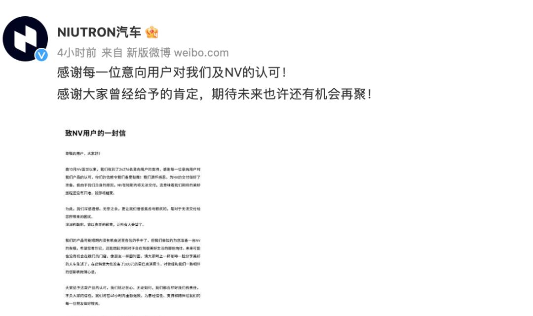 仅仅2个月后,自游家宣布短期内无法交付车辆,造车失败。