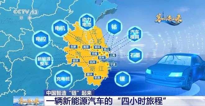长三角新能源汽车供应链 截图来源:央视新闻频道