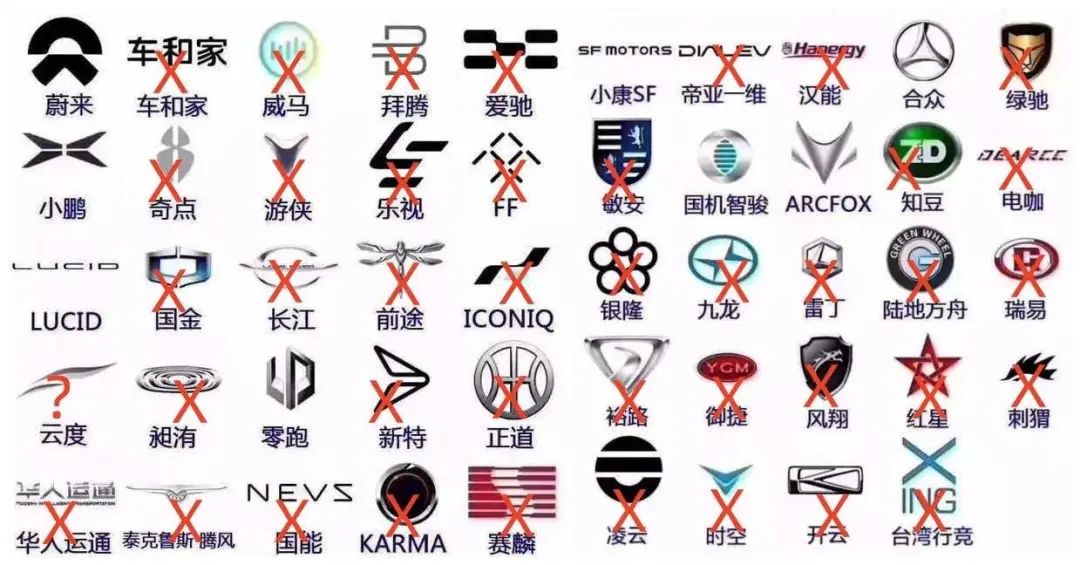 相信不少读者都还记得这张图片,据不完全统计最高峰时,光是注册在案的品牌就曾高达300多家。但那一个个“红叉”,又反映出了大多数主机厂的结局。