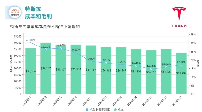 不过,需要注意的是,特斯拉在生产端降本,也在销售端降价,这也导致汽车销售收入未达到预期。在产销两端同时降价的情况下,毛利率不降反升,才是市场看好特斯拉的核心原因。
