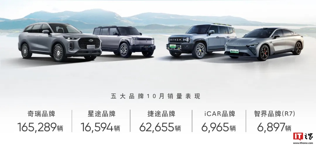 IT之家 11 月 1 日消息,奇瑞控股集团今日公布了 10 月汽车销售数据,10 月份销售汽车 272,155 辆,同比增长 35.9%。