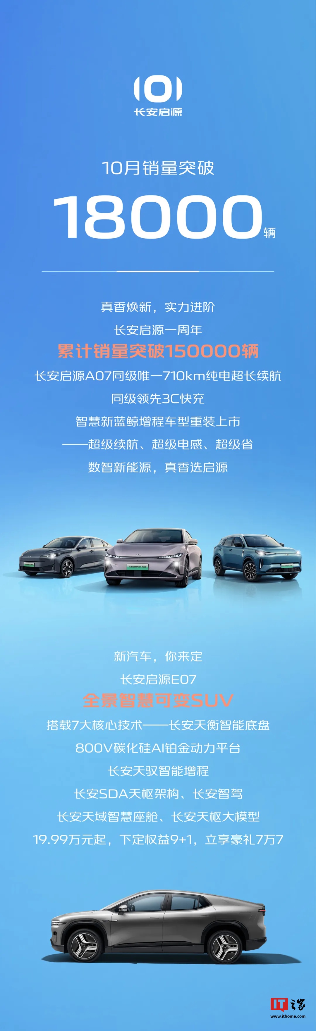 长安启源 10 月销量突破 18000 辆,一周年累计销量突破 150000 辆