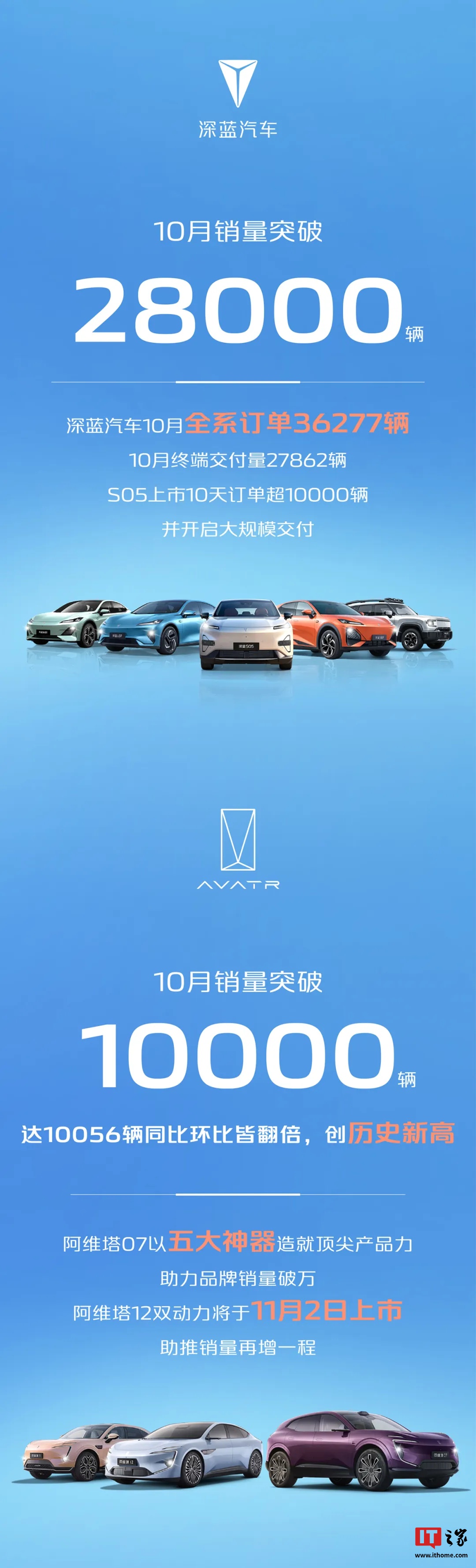 阿维塔 10 月销量突破 10000 辆,同比环比皆翻倍,创历史新高