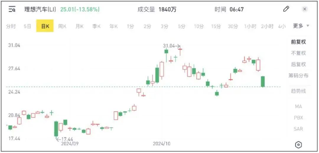 图:理想汽车美股走势来源:老虎证券 《听筒Tech》截图