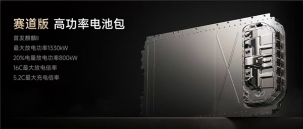 小米SU7 Ultra量产版配备了与原型车同源的赛道版高功率电池包,峰值电压达到897V,最大放电功率达到1330kW,最大放电倍率达到16C。