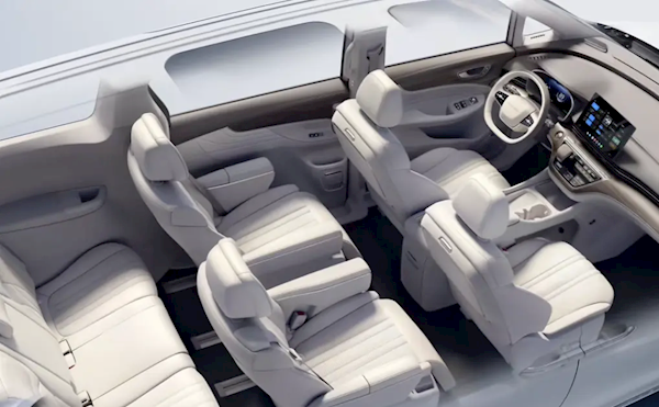 车内采用7座布局,主驾座椅支持加热/通风/按摩/记忆/四向腰托,第二排座椅可前后移动360毫米,第三排座椅可前后移动200毫米。