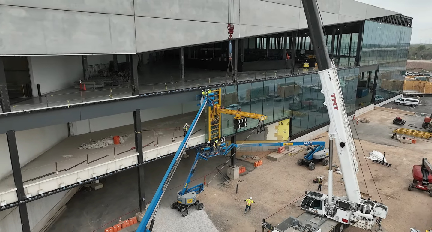 视频还展示了 Giga Texas 工厂的其他一些建设进展,包括增加了更多的玻璃面板,以及对用于超级计算集群 Cortex 的水冷塔进行测试。