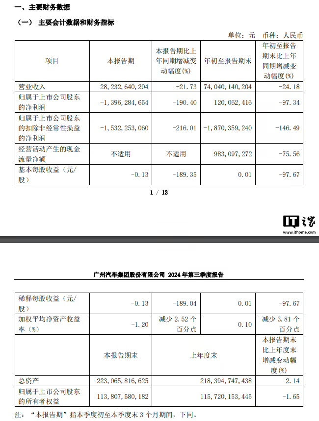 广汽集团于 10 月 30 日公布了最新的三季度报,IT之家汇总关键数据如下: