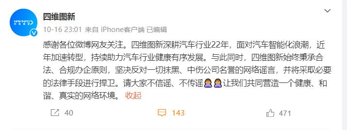 四维图新在行业内的地位并和海外多家公司合作,曾被网友怀疑是那家“B公司”。四维图新官微回复称,始终秉承合法、合规办企原则,坚决反对一切抹黑、中伤公司名誉的网络谣言。
