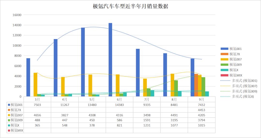 考虑到极氪7X正式交付仅一个月,极氪MIX才刚刚上市,因此,除极氪001外,极氪手里还有的“牌”为极氪007、009和极氪X。但这三款车型,在最近半年内的月销均未突破5000台。