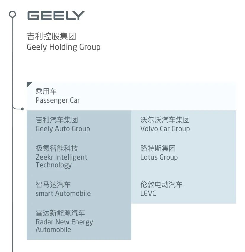 吉利旗下的乘用车品牌 来源/吉利控股集团官网