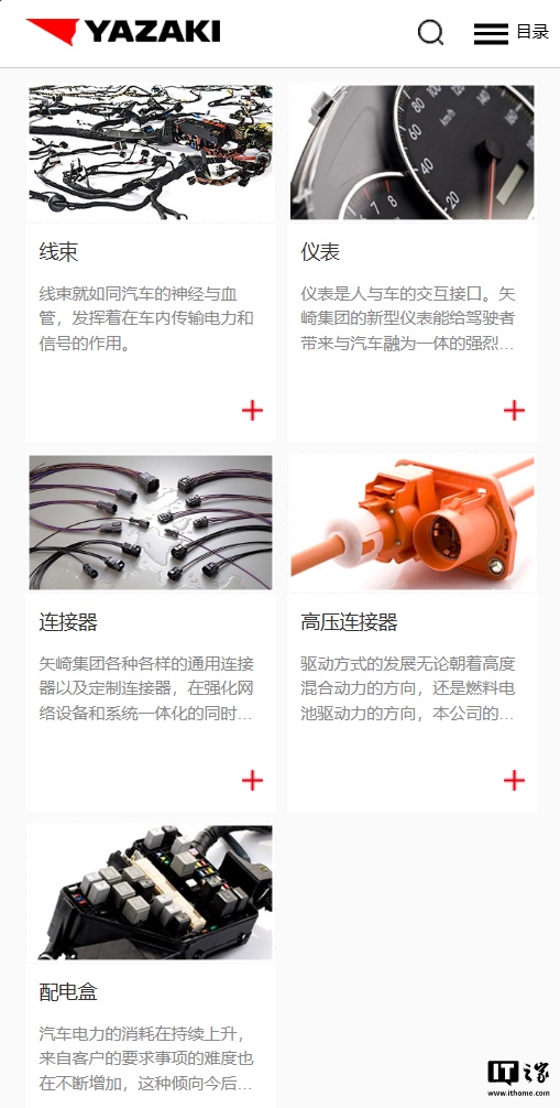 IT之家注:矢崎是一家成立于 1941 年,本部位于日本东京都和静冈县的大型跨国汽车配件制造商,主要从事汽车线束、汽车仪表、智能驾驶舱等汽车配件产业领域,除此以外同时还研发生产空调、电线、煤气设备、太阳能产品、太阳能与空气能、燃气、电能结合的设备以及中高温领域的生产设备。