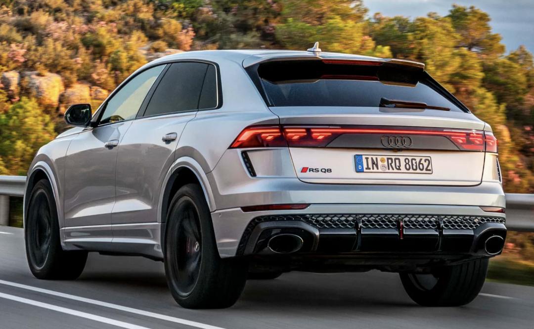 奥迪RSQ8,作为奥迪在高性能SUV领域的力作,RSQ8搭载了与RS6相同的4.0升双涡轮增压V8汽油发动机,最大功率592马力,峰值扭矩590磅-英尺,0-62英里(100公里)/小时加速仅需3.8秒,0-124英里(200公里)/小时加速13.7秒,最高限速155英里(250公里 )/小时。