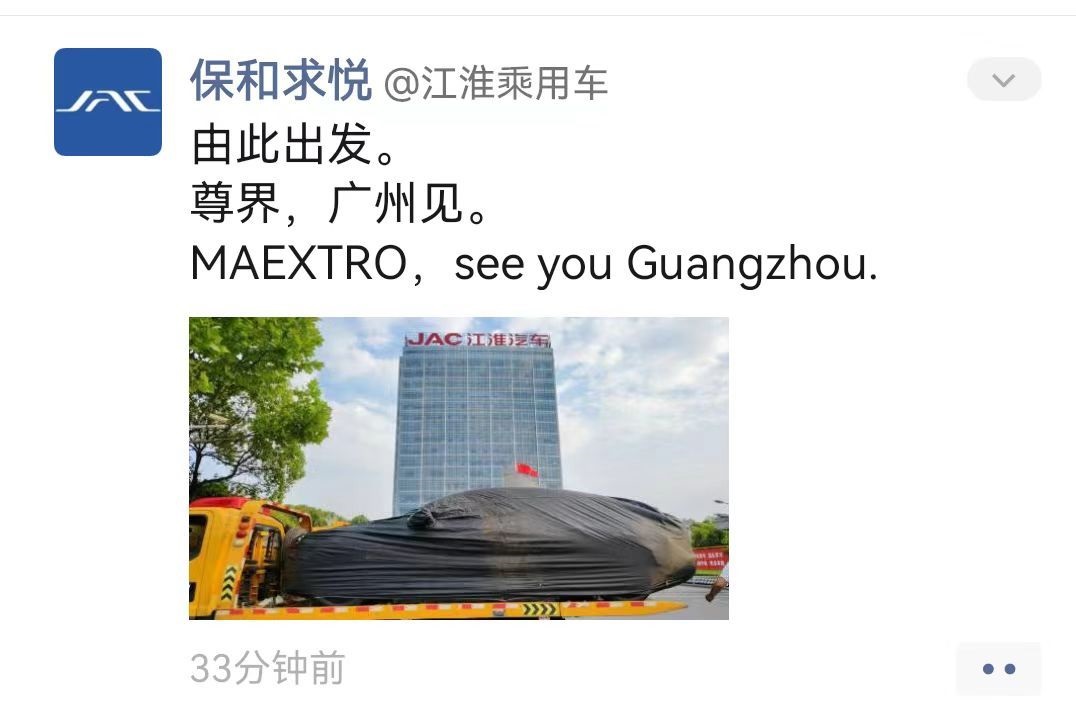 今日有大量汽车博主同时放出了一张认证为江淮乘用车官方工作人员的朋友圈截图,展示的是一张尊界启程发运、前往广州的照片。