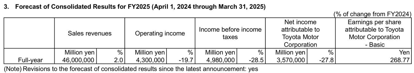 丰田汽车预测 2025 财年经营利润 4.3 万亿日元(当前约 2010.89 亿元人民币),市场预估 4.91 万亿日元。