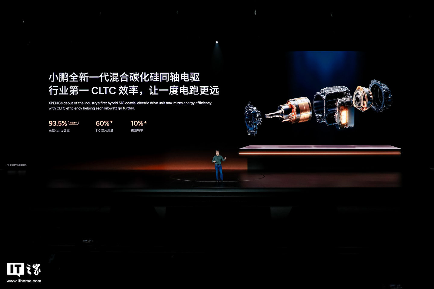 IT之家 11 月 6 日消息,在今天的小鹏 AI 科技日活动中,小鹏汽车发布了最新的电机技术 —— 混合碳化硅同轴电驱,号称具备“行业第一”的 CLTC(续航)效率 ——93.5%,能让一度电跑得更远,且在碳化硅芯片用量减少 60% 的同时,输出功率提升 10%。