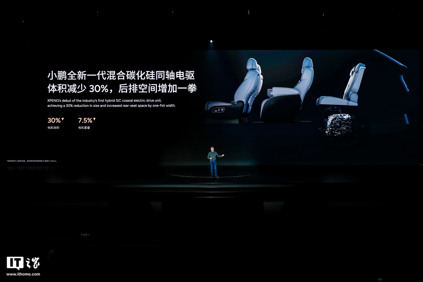 此外,小鹏的全新一代混合碳化硅同轴电驱体积较传统电机减少 30%,电机重量减少 7.5%,可为后排增加一拳的空间。据官方介绍,其运用混碳化硅芯片提升电机性能,将会用于超级电动车型、纯电车型。
