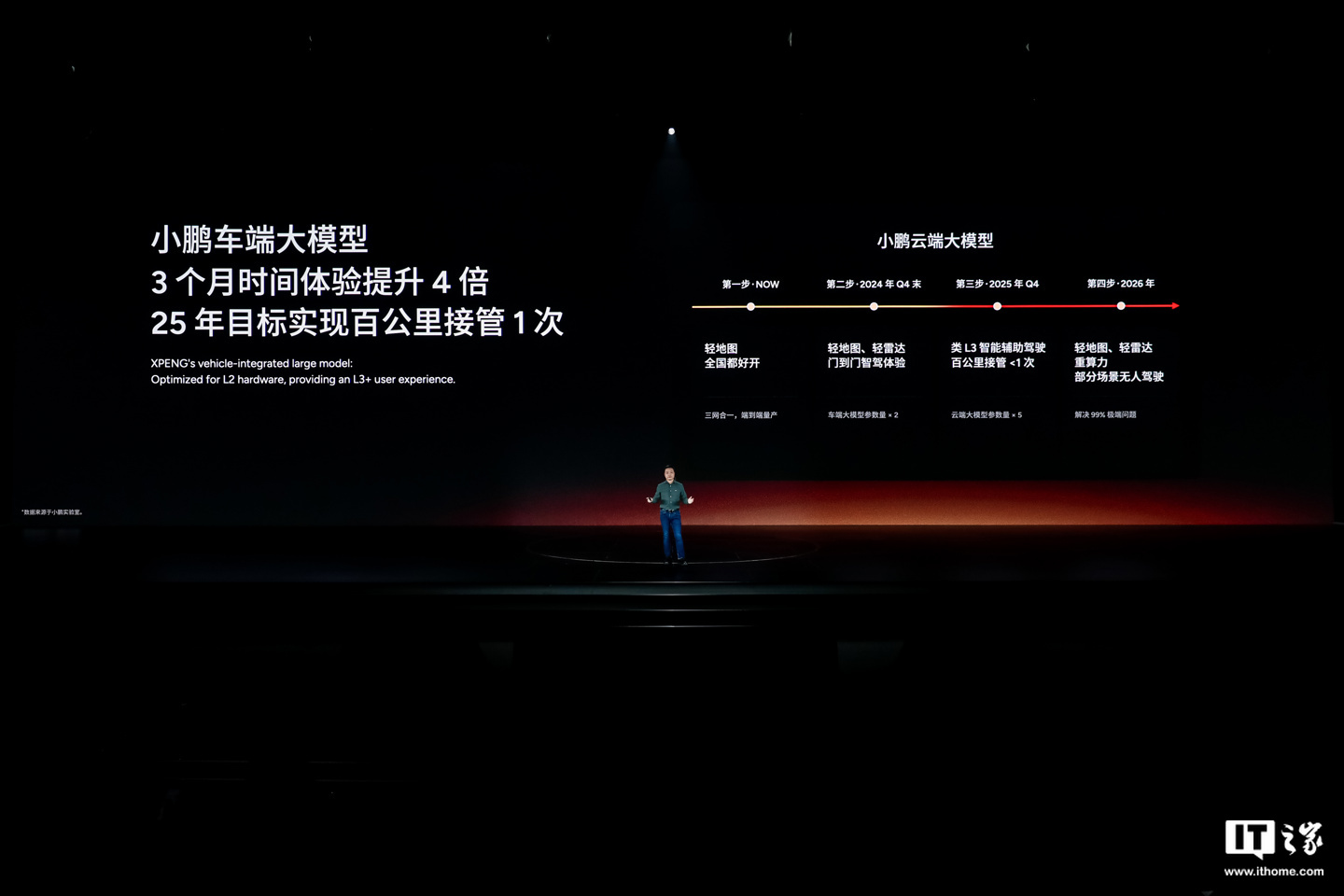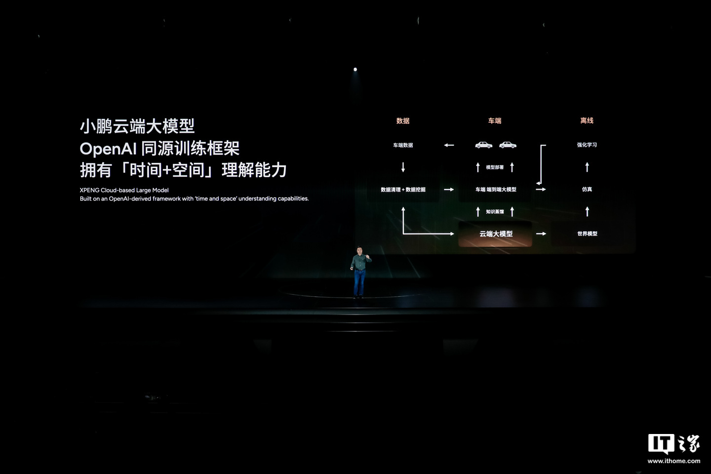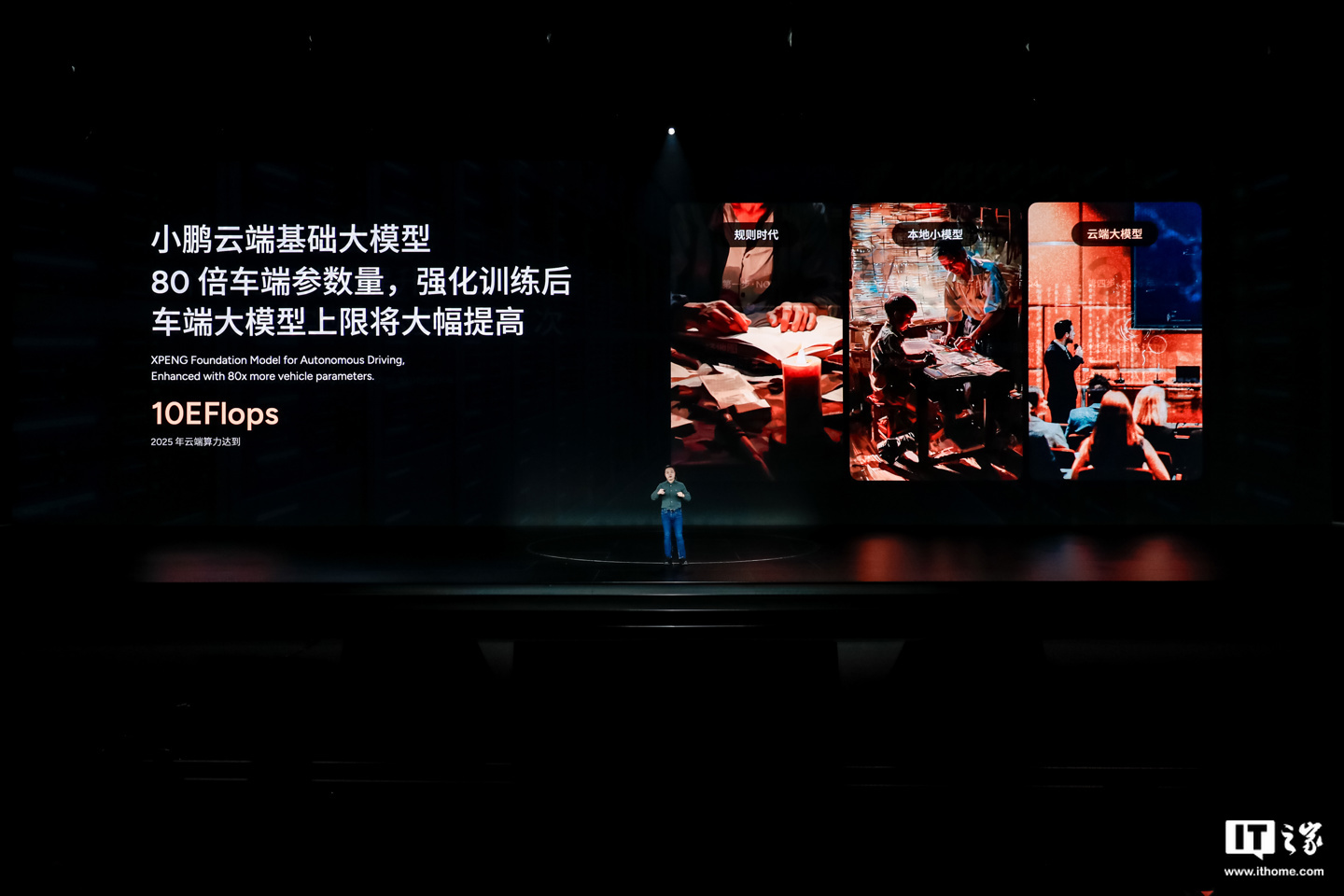 据介绍,小鹏的端到端大模型拥有“与 OpenAI 一致”的路线 —— 遵循尺度定律,提升模型大小、数据大小、增加训练计算量,让模型性能提升。同时,其云端大模型参数量将达车端的 80 倍。