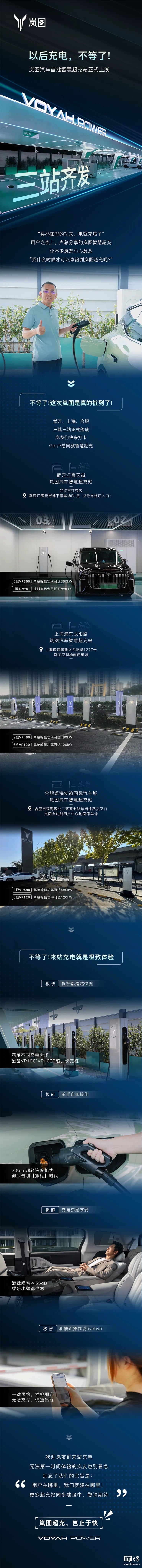 IT之家 11 月 6 日消息,岚图汽车今日宣布,岚图汽车首批智慧超充站已在武汉、上海、合肥三城三站正式落成。